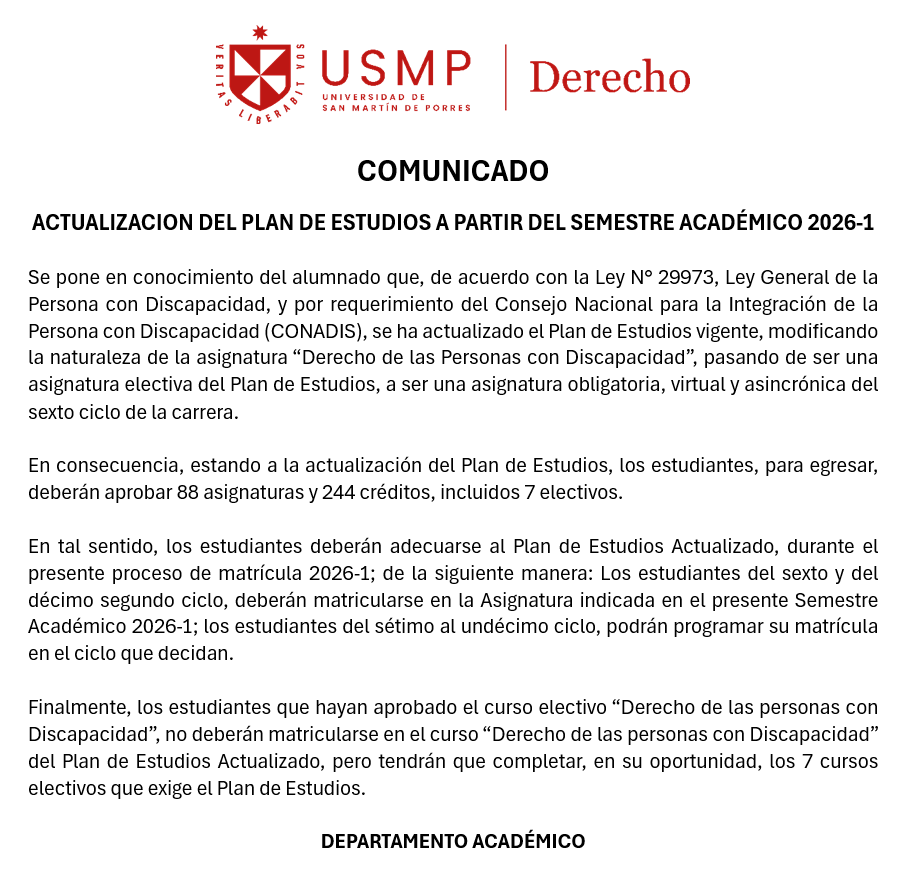 Dirigida a estudiantes de Derecho USMP con discapacidad