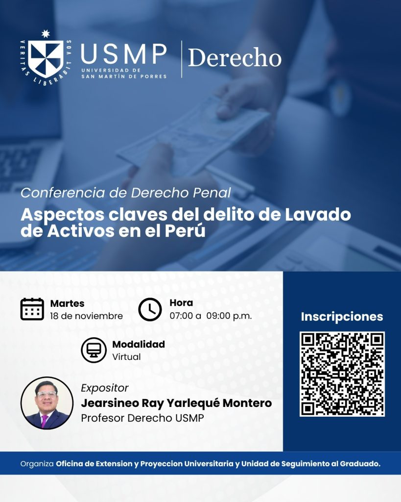 Conferencia en Derecho Penal: ASPECTOS CLAVES DEL DELITO DE LAVADO DE ACTIVOS EN EL PERÚ.